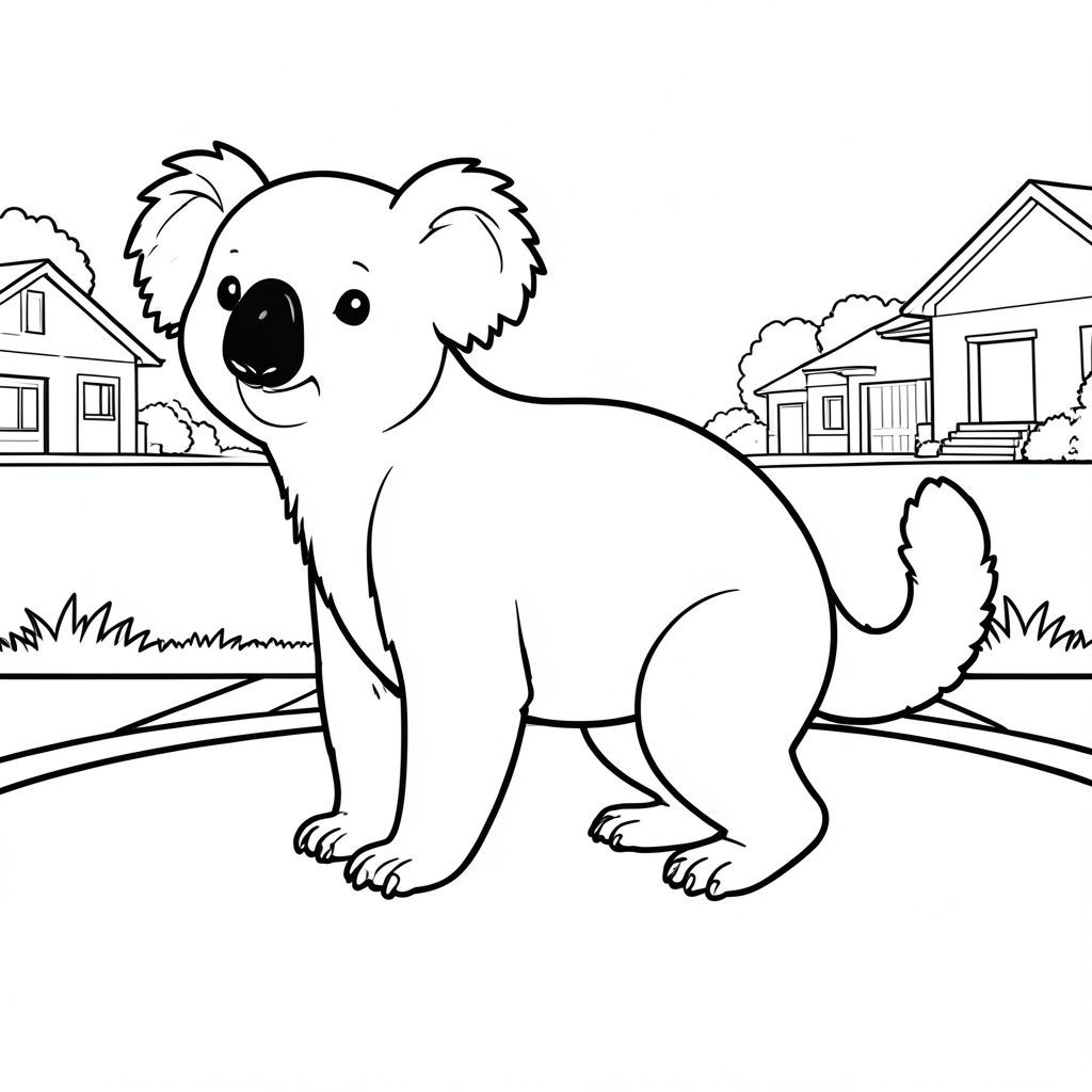 solo, chủ đề đơn, một đầu, hai mắt, hai tai, bốn chân, một đuôi, tỷ lệ tự nhiên, quy mô thích hợp trong môi trường, đúng giải phẫu, Koala, đường, ngoại ô, bên, đơn giản, sạch sẽ, lý lịch, cỏ, thẳng, vỉa hè, nhỏ, trang màu, nghệ thuật đường, nền trắng, solo, chủ đề đơn, đúng về mặt giải phẫu, giải phẫu hoàn hảo