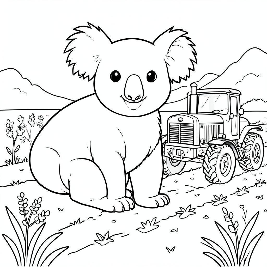 solo, chủ đề đơn, một đầu, hai mắt, hai tai, bốn chân, một đuôi, tỷ lệ tự nhiên, quy mô thích hợp trong môi trường, đúng giải phẫu, Koala, máy kéo, cánh đồng cày, trồng mùa xuân, đơn giản, sạch sẽ, lý lịch, cánh đồng, phong cảnh, thảm thực vật, đơn giản, trang tô màu, nghệ thuật đường, nền trắng, solo, chủ đề đơn, đúng về mặt giải phẫu, giải phẫu hoàn hảo