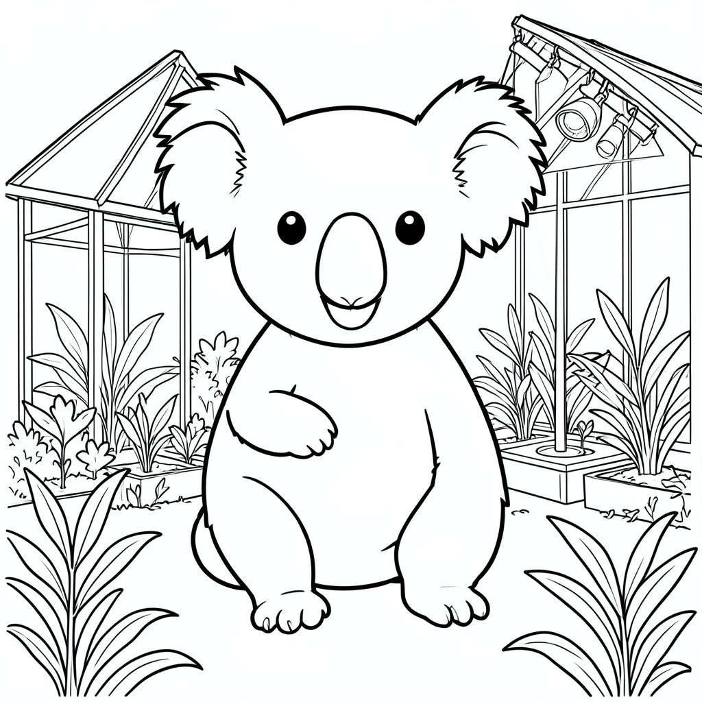 solo, chủ đề đơn, một đầu, hai mắt, hai tai, bốn chân, một đuôi, tỷ lệ tự nhiên, quy mô thích hợp trong môi trường, đúng giải phẫu, Koala, Nhà kính, cây con, phát triển đèn, ánh sáng mặt trời, thực vật, tán lá, nền đơn giản, dọn dẹp, tinh khiết, vẽ đường, trang màu, nghệ thuật đường, nền trắng, solo, chủ đề đơn, đúng giải phẫu, giải phẫu hoàn hảo