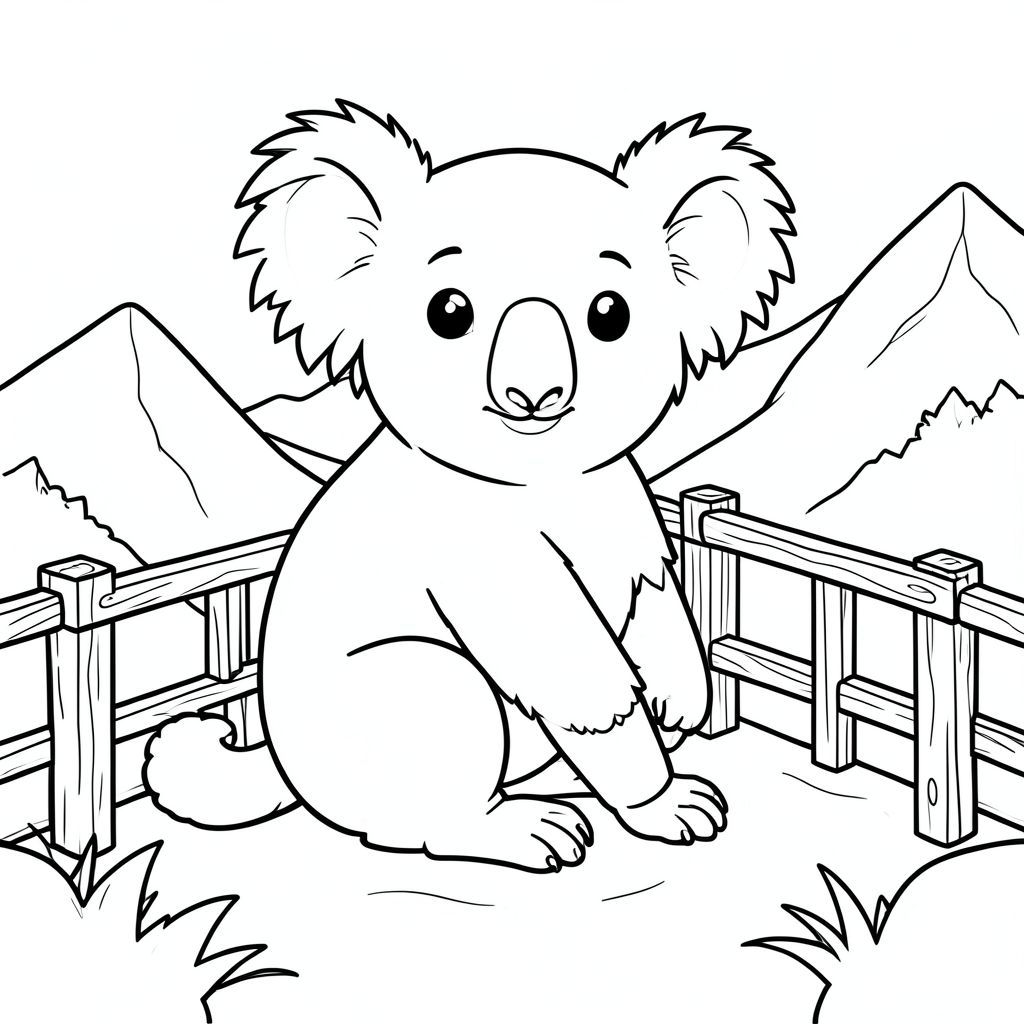 solo, chủ đề đơn, một đầu, hai mắt, hai tai, bốn chân, một đuôi, tỷ lệ tự nhiên, quy mô thích hợp trong môi trường, đúng giải phẫu, Koala, núi, quan điểm, quan sát, Lan can, Bằng gỗ, đơn giản, sạch sẽ, sách truyện, tinh khiết, trắng, trang màu, nghệ thuật đường, nền trắng, solo, chủ đề đơn, đúng về mặt giải phẫu, giải phẫu hoàn hảo