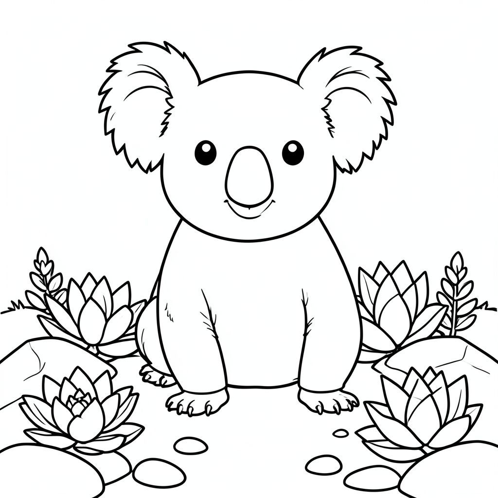 solo, chủ đề đơn, một đầu, hai mắt, hai tai, bốn chân, một đuôi, tỷ lệ tự nhiên, quy mô thích hợp trong môi trường, đúng giải phẫu, Koala, Vườn đá, xương rồng, đá mịn, nền đơn giản, môi trường sạch sẽ, nhỏ, sách truyện, tinh khiết, trang màu, nghệ thuật đường, nền trắng, solo, chủ đề đơn, đúng giải phẫu, giải phẫu hoàn hảo