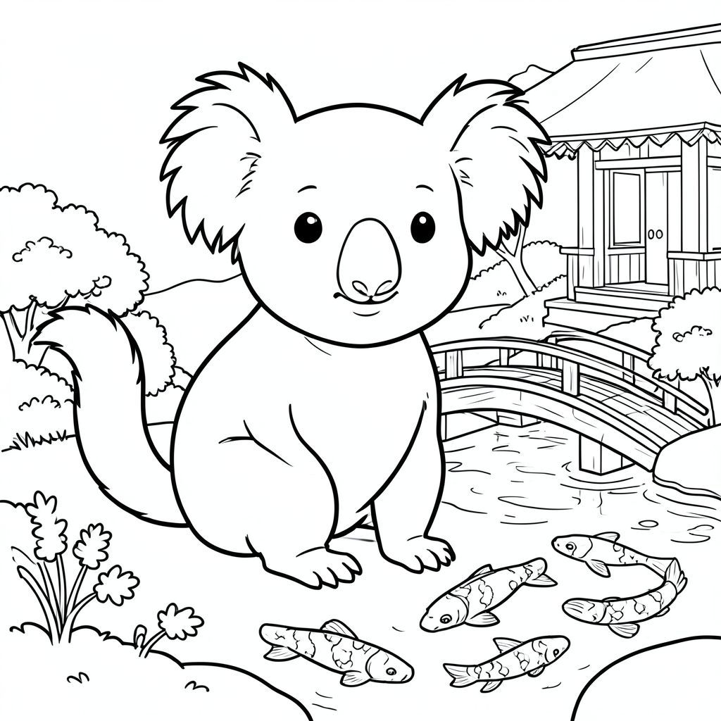 solo, chủ đề đơn, một đầu, hai mắt, hai tai, bốn chân, một đuôi, tỷ lệ tự nhiên, quy mô thích hợp trong môi trường, đúng giải phẫu, Koala, vườn Nhật Bản, cầu nhỏ, ao cá koi, cấu trúc bằng gỗ, nền đơn giản, sạch sẽ, sách truyện, tinh khiết, thanh thản, trang màu, nghệ thuật đường, nền trắng, solo, chủ đề đơn, đúng giải phẫu, giải phẫu hoàn hảo