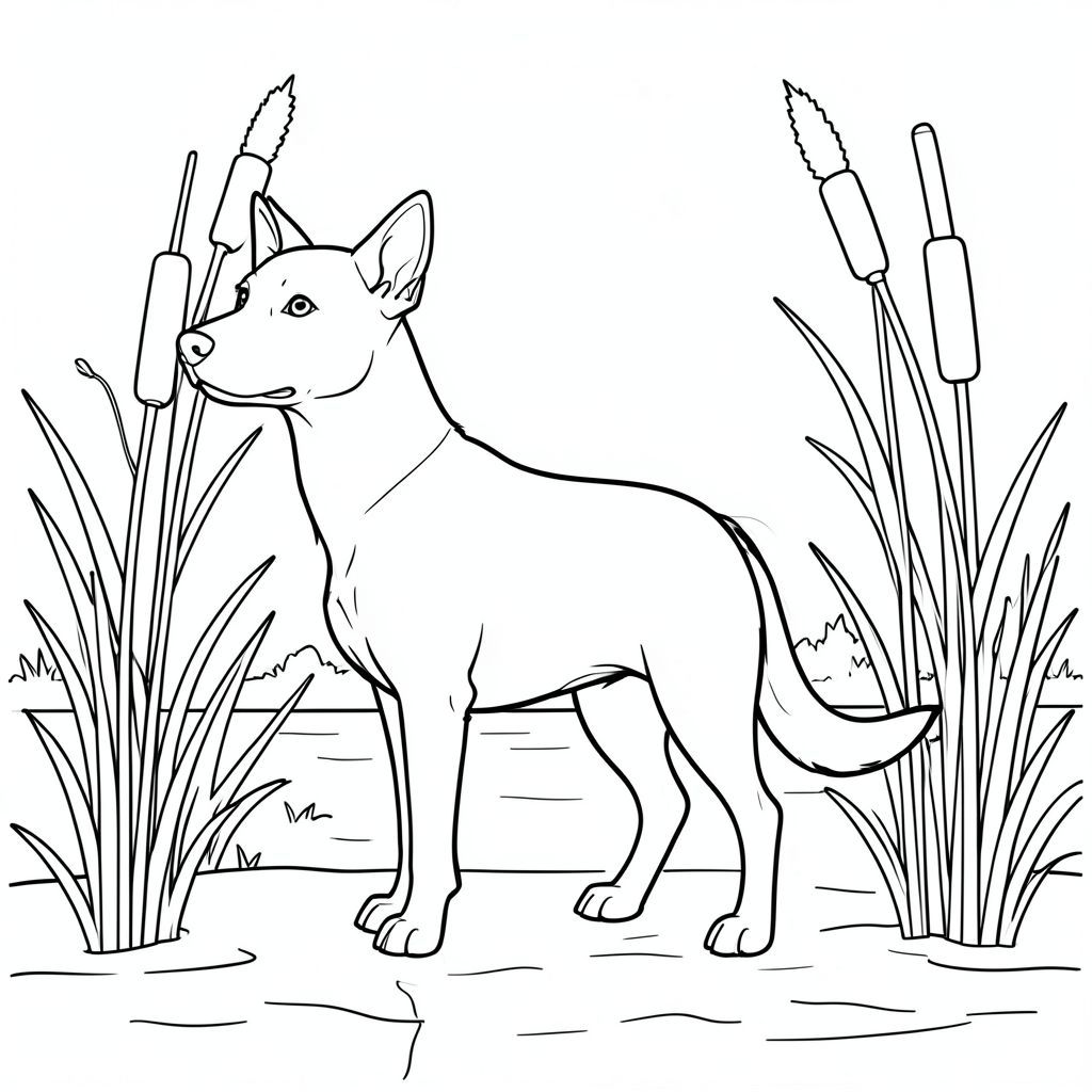 solo, chủ đề đơn, một đầu, hai mắt, hai tai, bốn chân, một đuôi, tỷ lệ tự nhiên, quy mô thích hợp trong môi trường, đúng giải phẫu,, sậy, cao, đuôi mèo, bờ sông, điềm tĩnh, nước, ánh sáng mặt trời, đơn giản, dọn dẹp, lý lịch, trang màu, nghệ thuật đường, nền trắng, solo, chủ đề đơn, đúng về mặt giải phẫu, giải phẫu hoàn hảo