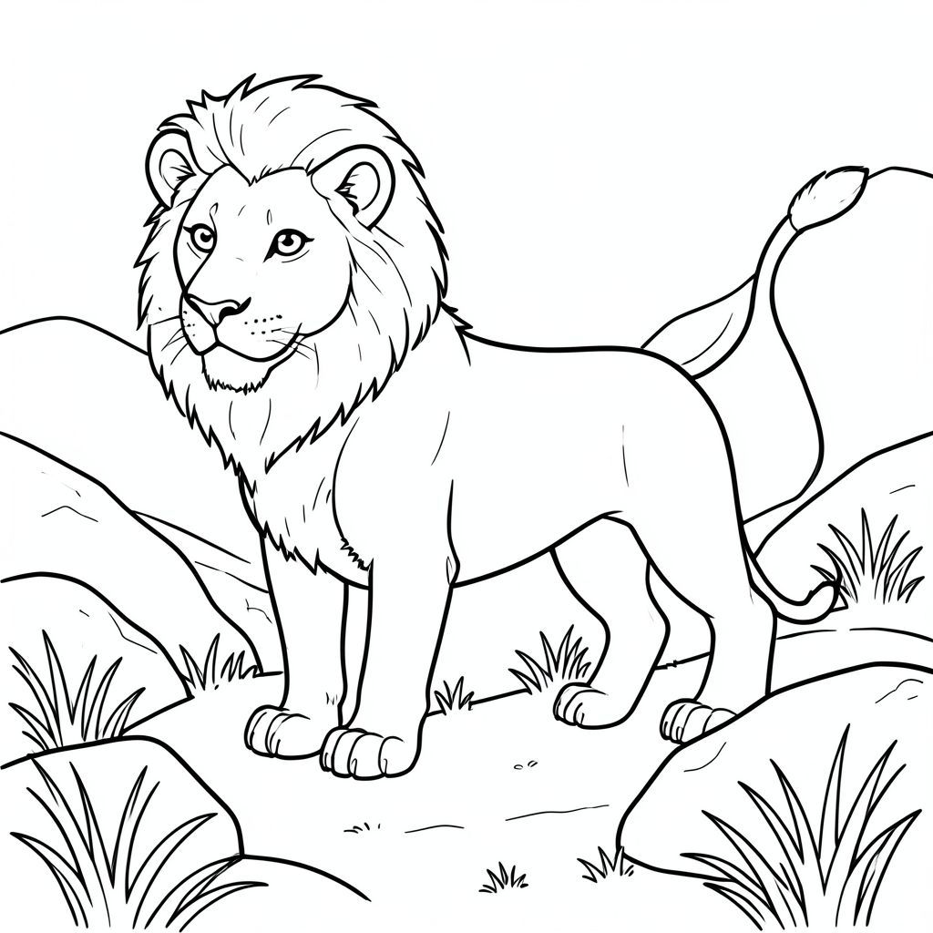 solo, chủ đề đơn, một đầu, hai mắt, hai tai, bốn chân, một đuôi, tỷ lệ tự nhiên, quy mô thích hợp trong môi trường, đúng giải phẫu, sư tử, chân đồi dốc, tảng đá, cỏ khô, ánh sáng mặt trời, nền đơn giản, dọn dẹp, sách truyện, tinh khiết, nội thất trắng, trang màu, nghệ thuật đường, nền trắng, solo, chủ đề đơn, đúng giải phẫu, giải phẫu hoàn hảo
