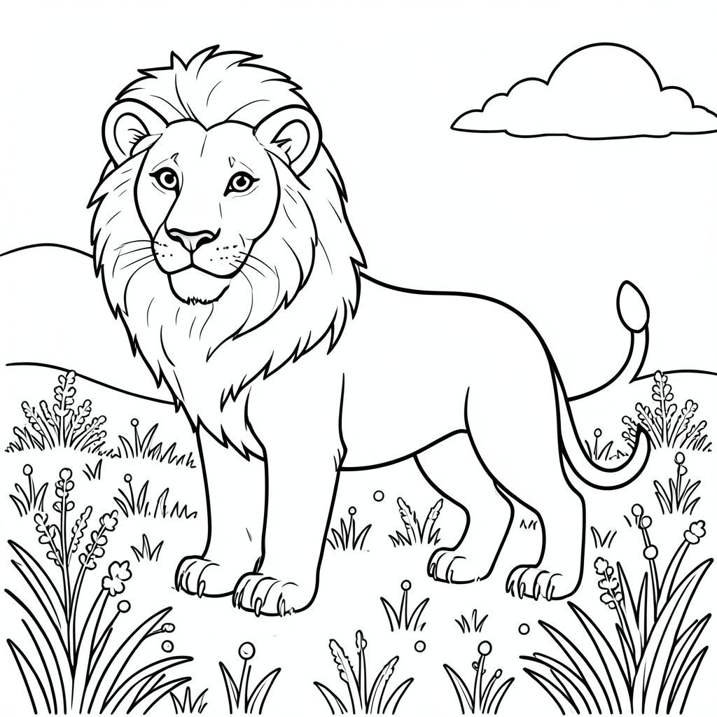 solo, chủ đề đơn, một đầu, hai mắt, hai tai, bốn chân, một đuôi, tỷ lệ tự nhiên, quy mô thích hợp trong môi trường, đúng giải phẫu, sư tử, đồng cỏ băng giá, giọt sương, cỏ, ánh sáng mặt trời, bầu trời quang đãng, nền đơn giản, sạch sẽ, tuyến tính, ngây thơ, sách truyện, trang màu, nghệ thuật đường, nền trắng, solo, chủ đề đơn, đúng giải phẫu, giải phẫu hoàn hảo