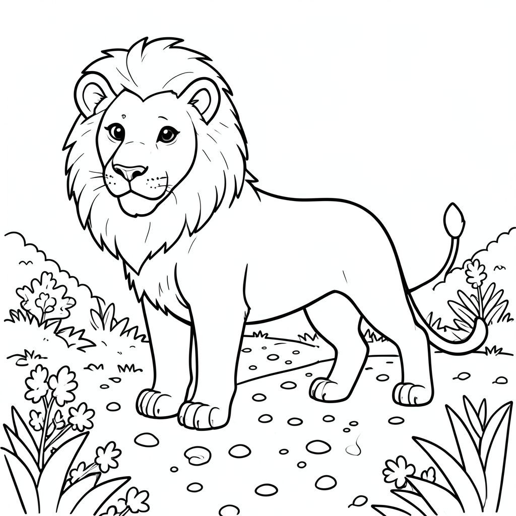 solo, chủ đề đơn, một đầu, hai mắt, hai tai, bốn chân, một đuôi, tỷ lệ tự nhiên, quy mô thích hợp trong môi trường, đúng giải phẫu, sư tử, Đường sỏi, con đường, vườn, yên bình, thanh thản, đơn giản, sạch sẽ, tối giản, truyện tranh, nghệ thuật đại chúng, trang màu, nghệ thuật đường, nền trắng, solo, chủ đề đơn, đúng về mặt giải phẫu, giải phẫu hoàn hảo