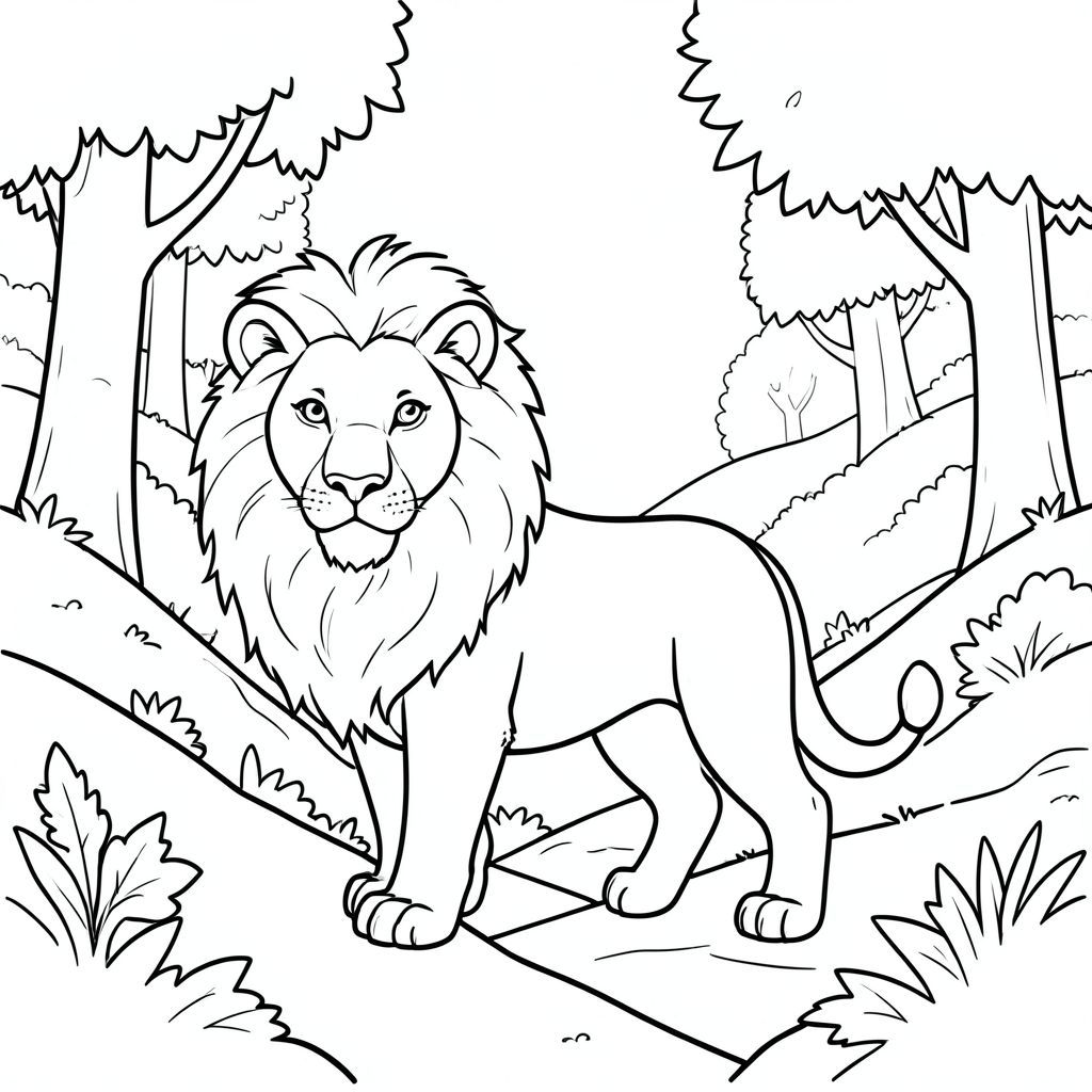 solo, chủ đề đơn, một đầu, hai mắt, hai tai, bốn chân, một đuôi, tỷ lệ tự nhiên, quy mô thích hợp trong môi trường, đúng giải phẫu, sư tử, rừng, sườn đồi, cầu thang, thung lũng, cây cối, ánh sáng mặt trời, trong sáng, đơn giản, lý lịch, dọn dẹp, trang màu, nghệ thuật đường, nền trắng, solo, chủ đề đơn, đúng về mặt giải phẫu, giải phẫu hoàn hảo