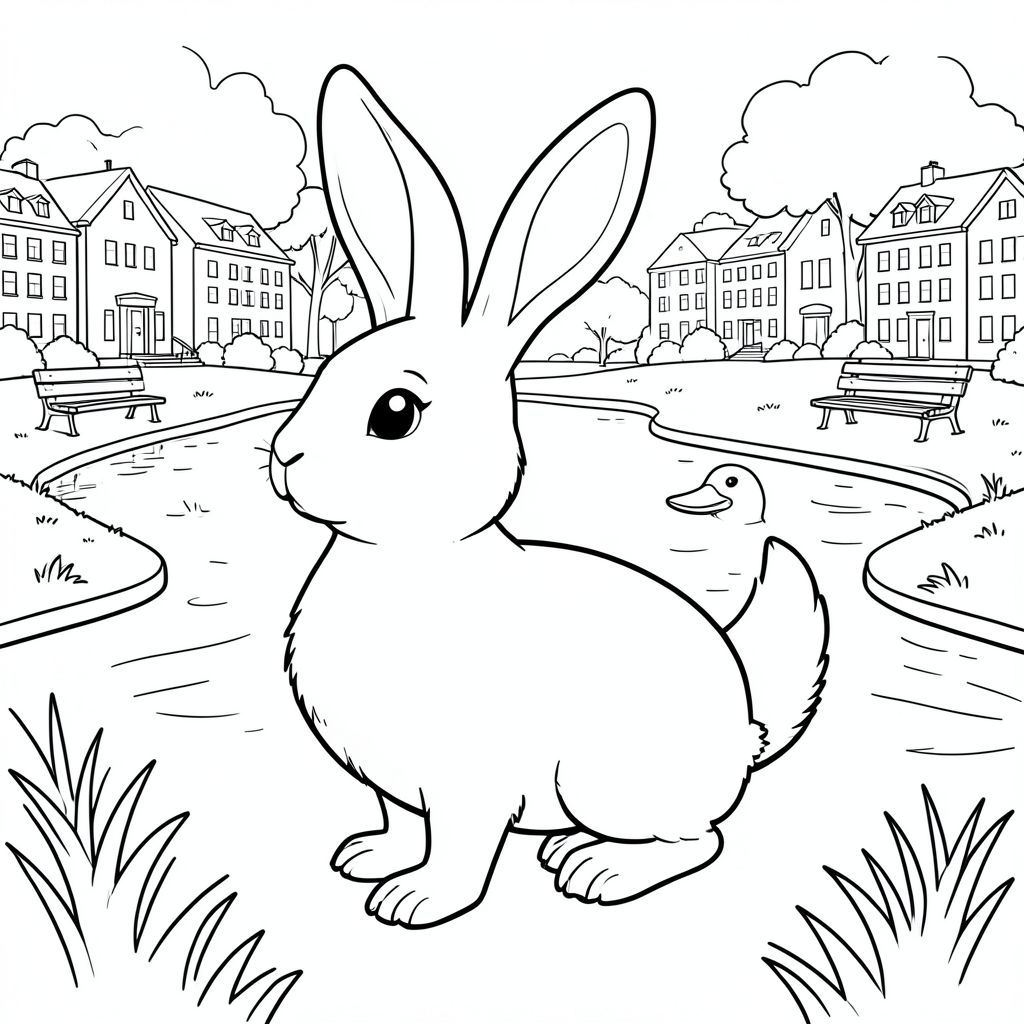 solo, chủ đề đơn, một đầu, hai mắt, hai tai, bốn chân, một đuôi, tỷ lệ tự nhiên, quy mô thích hợp trong môi trường, đúng giải phẫu, thỏ, ao vịt, công viên thị trấn, ngân hàng cỏ, băng ghế, nền đơn giản, dọn dẹp, tinh khiết, sách truyện, đơn giản, dọn dẹp, làm sạch, trang màu, nghệ thuật đường, nền trắng, solo, chủ đề đơn, đúng về mặt giải phẫu, giải phẫu hoàn hảo