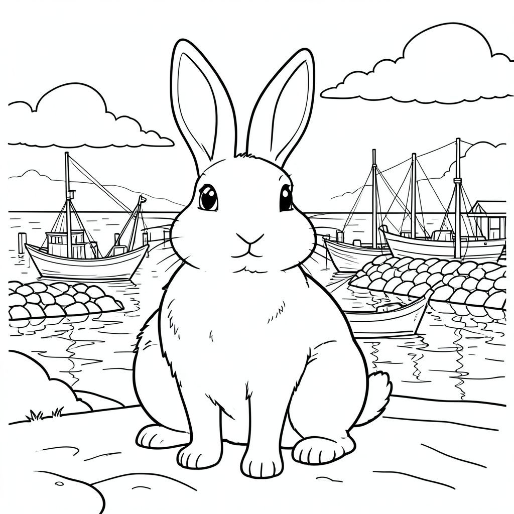 solo, chủ đề đơn, một đầu, hai mắt, hai tai, bốn chân, một đuôi, tỷ lệ tự nhiên, quy mô thích hợp trong môi trường, đúng giải phẫu, thỏ, Bến cảng bằng gỗ, bình minh, thuyền, đê chắn sóng đá, bờ biển, nước, bầu trời, mây, ánh sáng mặt trời, phản chiếu, trang màu, nghệ thuật đường, nền trắng, solo, chủ đề đơn, chính xác về mặt giải phẫu, giải phẫu hoàn hảo