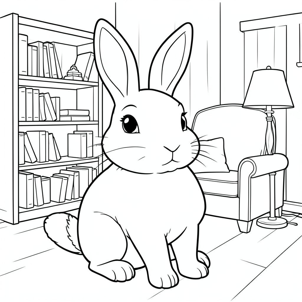 solo, chủ đề đơn, một đầu, hai mắt, hai tai, bốn chân, một đuôi, tỷ lệ tự nhiên, quy mô thích hợp trong môi trường, đúng giải phẫu, thỏ, giá sách, ghế bành, đèn, gỗ, nền đơn giản, đường sạch, tinh khiết, sách truyện, nội địa, ấm cúng, trang màu, nghệ thuật đường, nền trắng, solo, chủ đề đơn, đúng giải phẫu, giải phẫu hoàn hảo