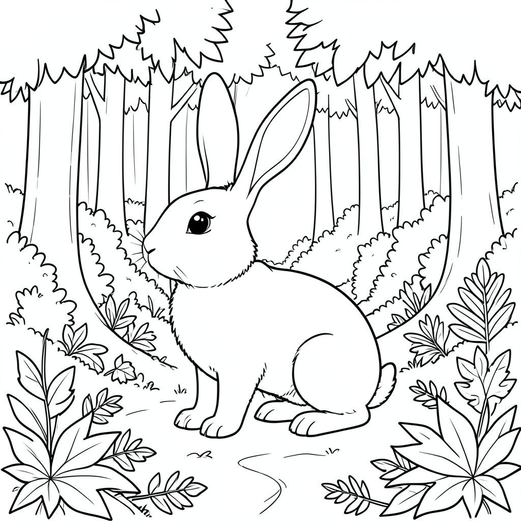 solo, chủ đề đơn, một đầu, hai mắt, hai tai, bốn chân, một đuôi, tỷ lệ tự nhiên, quy mô thích hợp trong môi trường, đúng giải phẫu, thỏ, lá mùa thu, nhiều lớp, rừng, dày đặc, cao, kết cấu, tán lá, quanh co, con đường, ánh sáng mặt trời, tô màu, nghệ thuật đường, nền trắng, solo, chủ đề đơn, đúng về mặt giải phẫu, giải phẫu hoàn hảo
