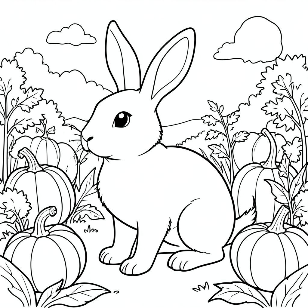 solo, chủ đề đơn, một đầu, hai mắt, hai tai, bốn chân, một đuôi, tỷ lệ tự nhiên, quy mô thích hợp trong môi trường, đúng giải phẫu, thỏ, Miếng vá bí ngô, mùa thu, buổi sáng, bầu, cánh đồng, đơn giản, sạch sẽ, lý lịch, tán lá, ánh sáng mặt trời, trang tô màu, nghệ thuật đường nét, nền trắng, solo, chủ đề đơn, đúng giải phẫu, giải phẫu hoàn hảo
