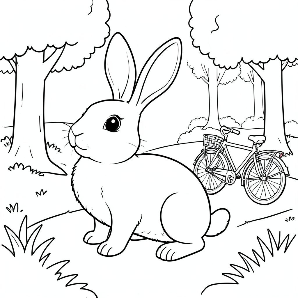 solo, chủ đề đơn, một đầu, hai mắt, hai tai, bốn chân, một đuôi, tỷ lệ tự nhiên, quy mô thích hợp trong môi trường, đúng giải phẫu, thỏ, rừng, con đường, yên tĩnh, xe đạp, công viên, ngoại ô, nhỏ, đơn giản, dọn dẹp, lý lịch, tô màu, nghệ thuật đường, nền trắng, solo, chủ đề đơn, đúng về mặt giải phẫu, giải phẫu hoàn hảo