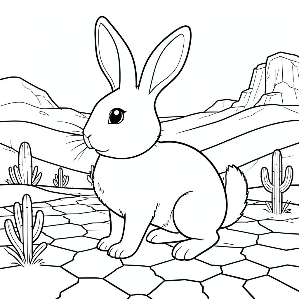 solo, chủ đề đơn, một đầu, hai mắt, hai tai, bốn chân, một đuôi, tỷ lệ tự nhiên, quy mô thích hợp trong môi trường, đúng giải phẫu, thỏ, sa mạc, cát, cồn cát, rộng lớn, mở rộng, đường chân trời, ánh sáng mặt trời, đất nứt, sự hình thành đá, xương rồng, trang màu, nghệ thuật đường, nền trắng, solo, chủ đề đơn, chính xác về mặt giải phẫu, giải phẫu hoàn hảo