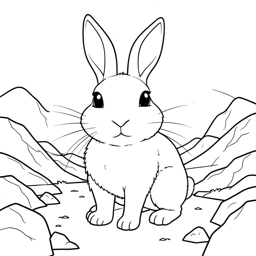 solo, chủ đề đơn, một đầu, hai mắt, hai tai, bốn chân, một đuôi, tỷ lệ tự nhiên, quy mô thích hợp trong môi trường, đúng giải phẫu, thỏ, sa mạc, thiêu đốt, sương mù nhiệt, ánh sáng mặt trời, cao, phong cảnh, khô cằn, đá, cát, cồn cát, trang tô màu, nghệ thuật đường, nền trắng, solo, chủ đề đơn, đúng về mặt giải phẫu, giải phẫu hoàn hảo