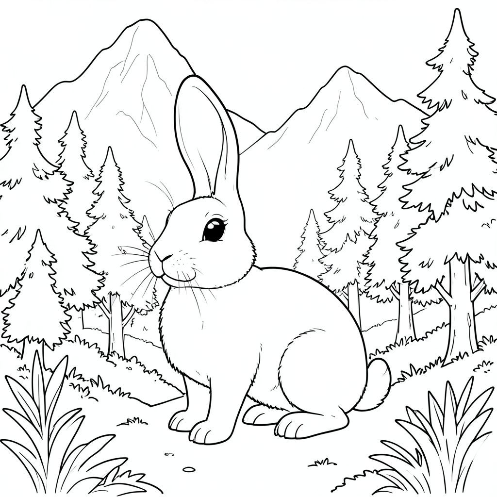 solo, chủ đề đơn, một đầu, hai mắt, hai tai, bốn chân, một đuôi, tỷ lệ tự nhiên, quy mô thích hợp trong môi trường, đúng giải phẫu, thỏ, sương mù, núi, vượt qua, cây, xưa, sương mù, trắng, dày đặc, tán lá, cao, trang màu, nghệ thuật đường, nền trắng, solo, chủ đề đơn, đúng về mặt giải phẫu, giải phẫu hoàn hảo
