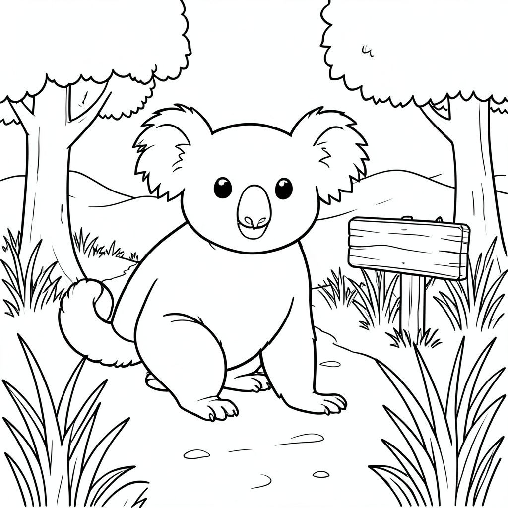 solo, chủ đề đơn, một đầu, hai mắt, hai tai, bốn chân, một đuôi, tỷ lệ tự nhiên, quy mô thích hợp trong môi trường, đúng về mặt giải phẫu, Koala, cỏ, cây cối, con đường, đường mòn, dấu hiệu gỗ, cỏ cao, ánh sáng mặt trời, nền đơn giản, dọn dẹp, thuần khiết, trang màu, nghệ thuật đường, nền trắng, solo, chủ đề đơn, đúng về mặt giải phẫu, giải phẫu hoàn hảo