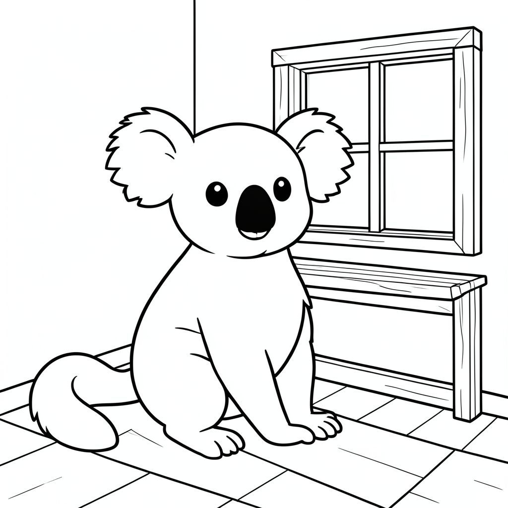 solo, chủ đề đơn, một đầu, hai mắt, hai tai, bốn chân, một đuôi, tỷ lệ tự nhiên, quy mô thích hợp trong môi trường, đúng về mặt giải phẫu, Koala, Kệ đồ chơi, Chỗ ngồi cửa sổ, sàn nhà, khung gỗ, nền đơn giản, dọn dẹp, trắng, ấm cúng, nhỏ, phòng, trang màu, nghệ thuật đường, nền trắng, solo, chủ đề đơn, đúng về mặt giải phẫu, giải phẫu hoàn hảo