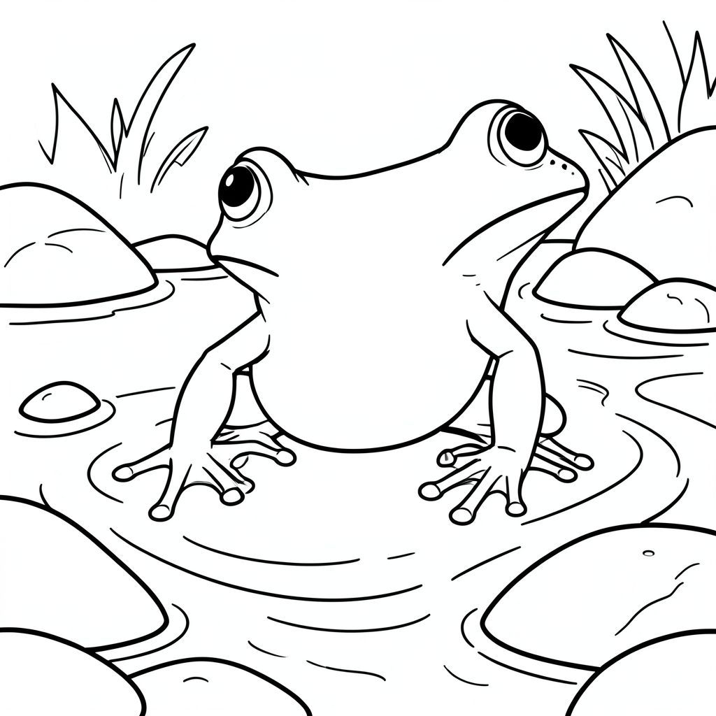solo, ếch đơn, bốn chân, một đầu, không có đuôi, chính xác về mặt giải phẫu, ếch, Suối, đá, nước, mịn, đánh bóng, ánh sáng mặt trời, phản chiếu, rõ ràng, nhẹ nhàng, chảy, trang màu, nghệ thuật đường, nền trắng, solo, chủ đề đơn, chính xác về mặt giải phẫu, giải phẫu hoàn hảo