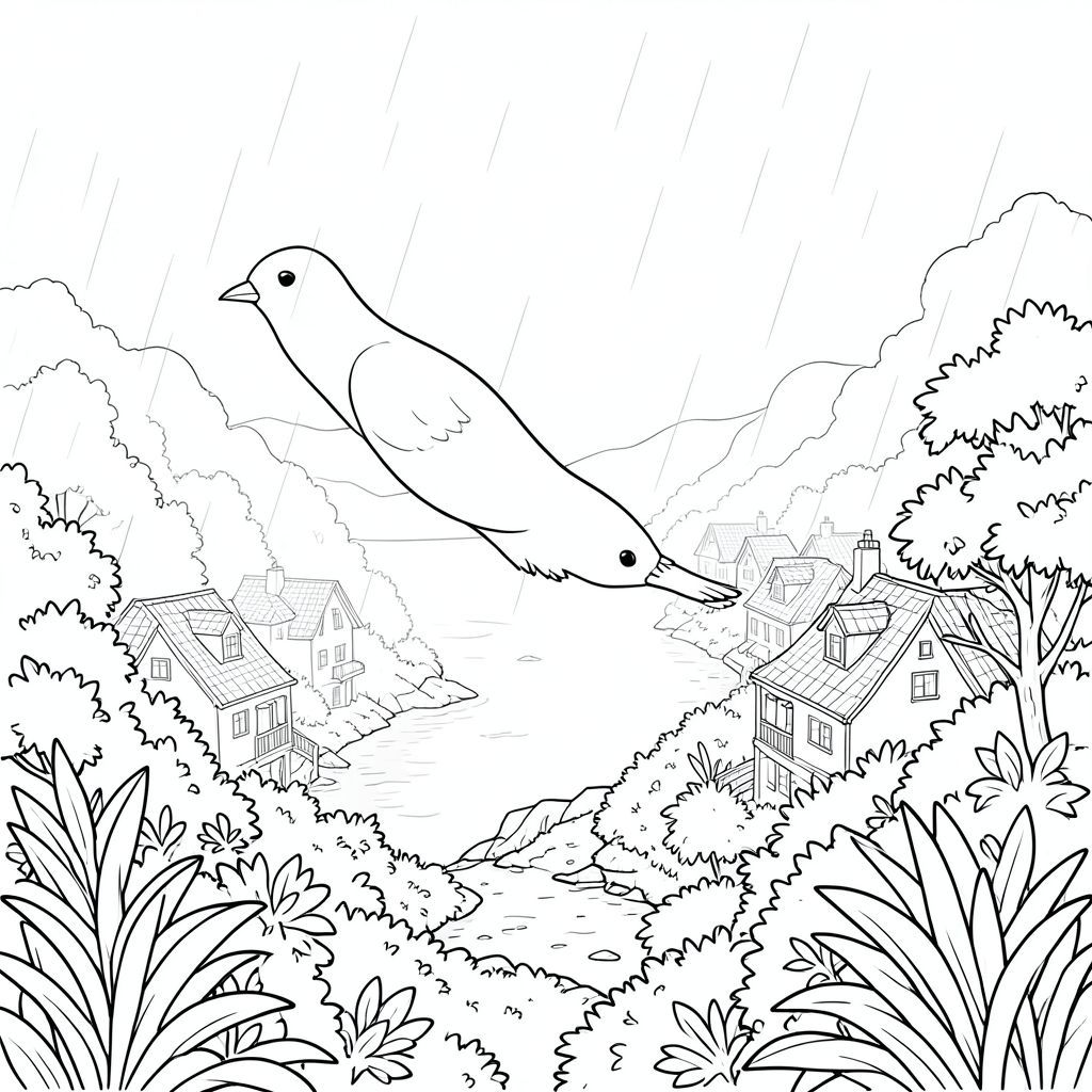 Solo, (một chim: 1.3), (hai chân: 1.2), (hai cánh: 1.2), (một mỏ: 1.2), (đúng giải phẫu: 1.4), (chim: 1.5), sương mù, thị trấn ven biển, mái nhà, ngọn cây, thảm thực vật rậm rạp, u ám, đơn sắc, mưa, sương mù, khí quyển, siêu thực, phối cảnh, độ sâu, mờ, xa, trang màu, nghệ thuật đường nét, nền trắng, (solo: 1.3), (đối tượng đơn: 1.2), (đúng giải phẫu: 1.4), (giải phẫu hoàn hảo: 1.3), (tỷ lệ chính xác: 1.2)