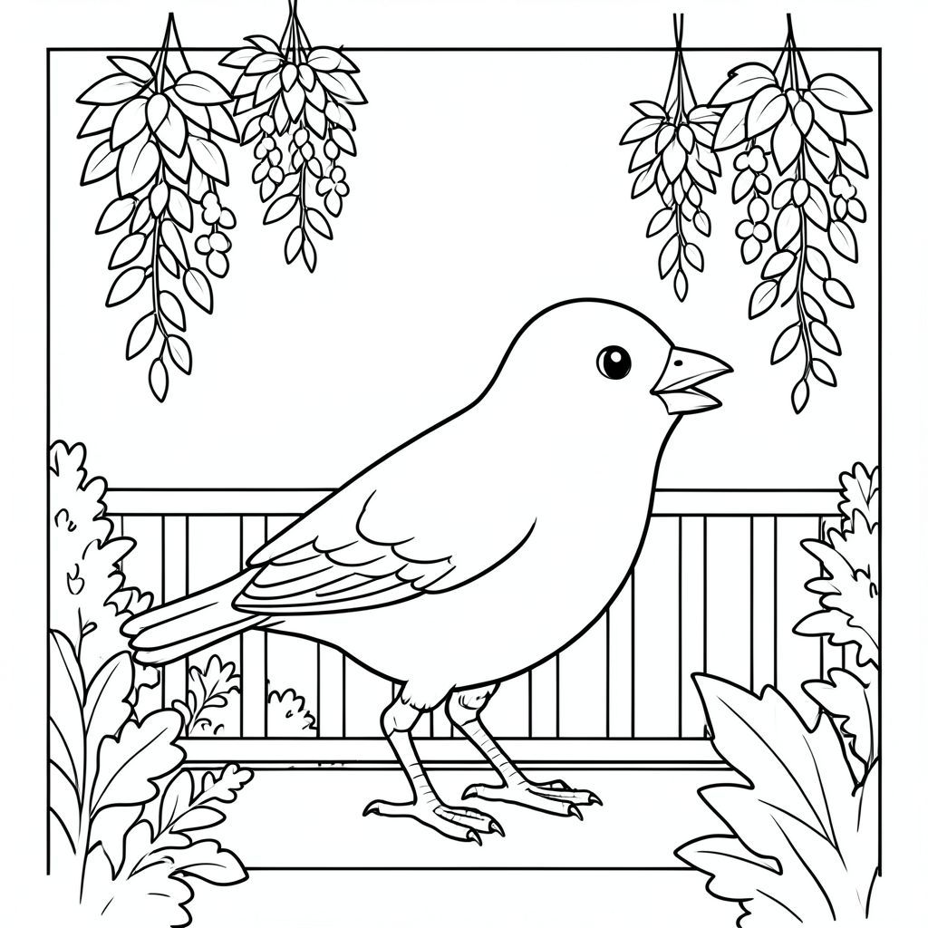 solo, một con chim, một đầu, hai mắt, một mỏ, hai cánh, hai chân, một đuôi, tỷ lệ tự nhiên, quy mô thích hợp trong môi trường, đúng giải phẫu, chim, Ban công, cây xanh, cây treo, vườn, mềm, nền đơn giản, sạch sẽ, tinh khiết, nội thất trắng, trang màu, nghệ thuật đường, nền trắng, solo, chủ đề đơn, đúng về mặt giải phẫu, giải phẫu hoàn hảo