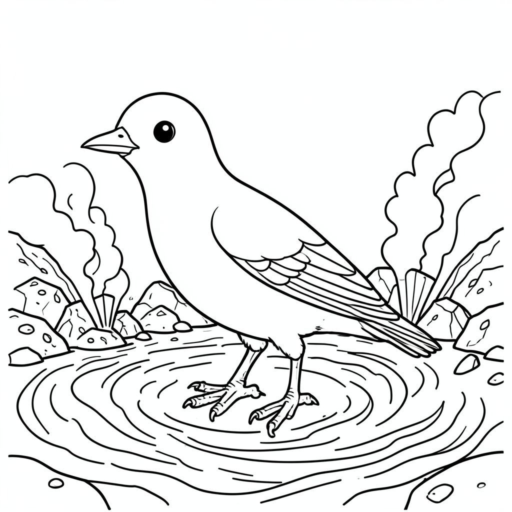 solo, một con chim, một đầu, hai mắt, một mỏ, hai cánh, hai chân, một đuôi, tỷ lệ tự nhiên, quy mô thích hợp trong môi trường, đúng giải phẫu, chim, Địa nhiệt, suối nước nóng, lỗ thông hơi, đá núi lửa, trầm tích khoáng sản, nước xoáy, mãnh liệt, năng động, hoạt động, nhỏ, trang màu, nghệ thuật đường, nền trắng, solo, chủ đề đơn, đúng giải phẫu, giải phẫu hoàn hảo