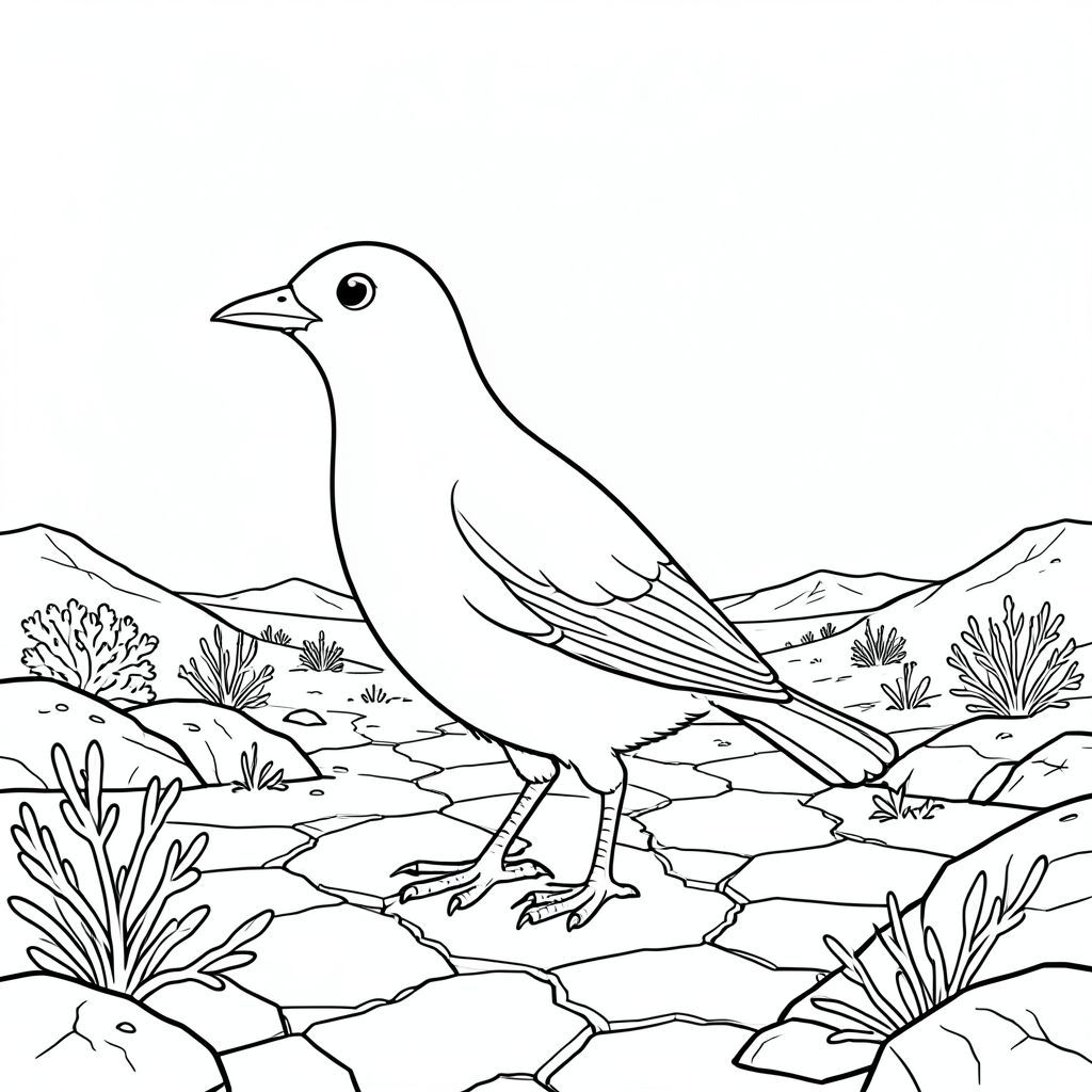 solo, một con chim, một đầu, hai mắt, một mỏ, hai cánh, hai chân, một đuôi, tỷ lệ tự nhiên, quy mô thích hợp trong môi trường, đúng giải phẫu, chim, Độ cao cao, cao nguyên sa mạc, thảm thực vật thưa thớt, bầu trời rộng, hoang vắng, địa hình đá, nứt đất, ánh nắng, rộng lớn, trong sáng, trang màu, nghệ thuật đường, nền trắng, solo, chủ đề đơn, đúng giải phẫu, giải phẫu hoàn hảo