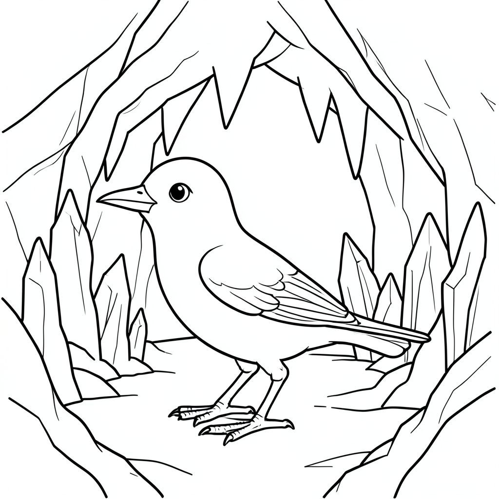 solo, một con chim, một đầu, hai mắt, một mỏ, hai cánh, hai chân, một đuôi, tỷ lệ tự nhiên, quy mô thích hợp trong môi trường, đúng giải phẫu, chim, Hang pha lê, thạch anh, sự hình thành, độ sâu, khoáng sản, đá, hang động, Tường, trần nhà, mịn, trang màu, nghệ thuật đường nét, nền trắng, solo, chủ đề đơn, đúng giải phẫu, giải phẫu hoàn hảo