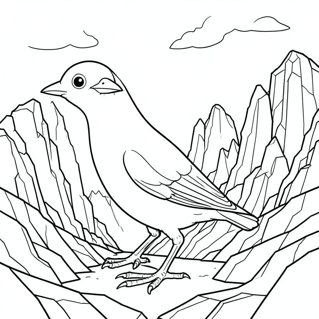 solo, một con chim, một đầu, hai mắt, một mỏ, hai cánh, hai chân, một đuôi, tỷ lệ tự nhiên, quy mô thích hợp trong môi trường, đúng giải phẫu, chim, núi đá vôi, đỉnh đá vôi, đỉnh răng cưa, cấu trúc thẳng đứng, địa hình đá, phong cảnh hoang vắng, bầu trời u ám, hình dạng đứt gãy, hình dạng hình học, tương phản rõ rệt, trang màu, nghệ thuật đường, nền trắng, solo, chủ đề đơn, đúng giải phẫu, giải phẫu hoàn hảo