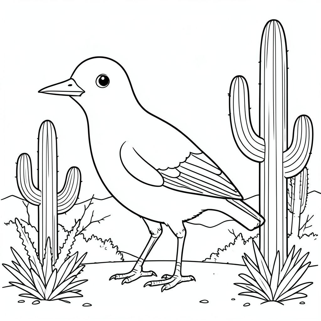 solo, một con chim, một đầu, hai mắt, một mỏ, hai cánh, hai chân, một đuôi, tỷ lệ tự nhiên, quy mô thích hợp trong môi trường, đúng giải phẫu, chim, sa mạc, Sonoran, xương rồng, giờ, phong cảnh, chi tiết, thực tế, khô cằn, ánh nắng, cao, trang màu, nghệ thuật đường, nền trắng, solo, chủ đề đơn, chính xác về mặt giải phẫu, giải phẫu hoàn hảo