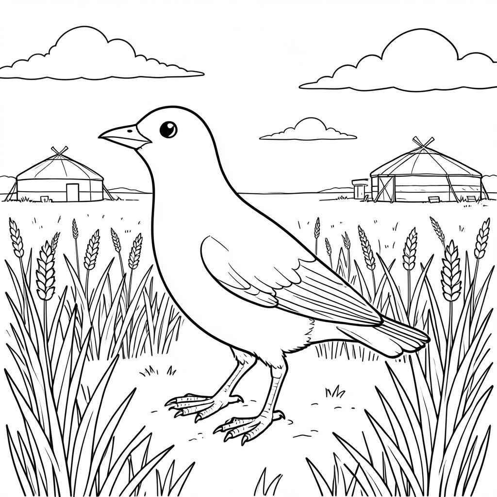 solo, một con chim, một đầu, hai mắt, một mỏ, hai cánh, hai chân, một đuôi, tỷ lệ tự nhiên, quy mô thích hợp trong môi trường, đúng giải phẫu, chim, thảo nguyên, đồng cỏ, cỏ vô tận, thân cây cao, làng lều xa, đường chân trời, bầu trời, đám mây, ánh sáng mặt trời, bụi, trang màu, nghệ thuật đường, nền trắng, solo, chủ đề đơn, đúng giải phẫu, giải phẫu hoàn hảo