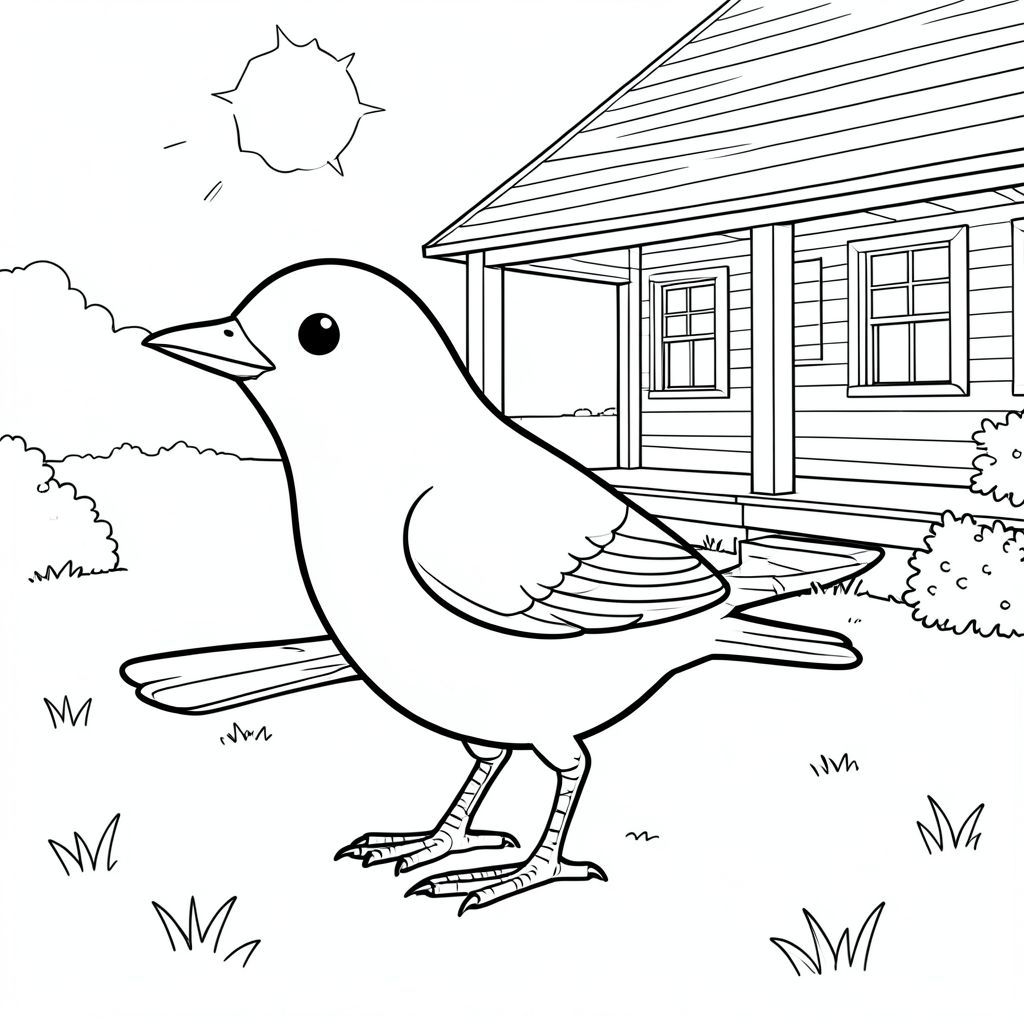 solo, một con chim, một đầu, hai mắt, một mỏ, hai cánh, hai chân, một đuôi, tỷ lệ tự nhiên, quy mô thích hợp trong môi trường, đúng giải phẫu, chim, Trang trại, hiên nhà, bãi cỏ, nắng, đơn giản, sạch sẽ, lý lịch, phong cảnh, nông thôn, nông thôn, trang màu, nghệ thuật đường, nền trắng, solo, chủ đề đơn, đúng về mặt giải phẫu, giải phẫu hoàn hảo