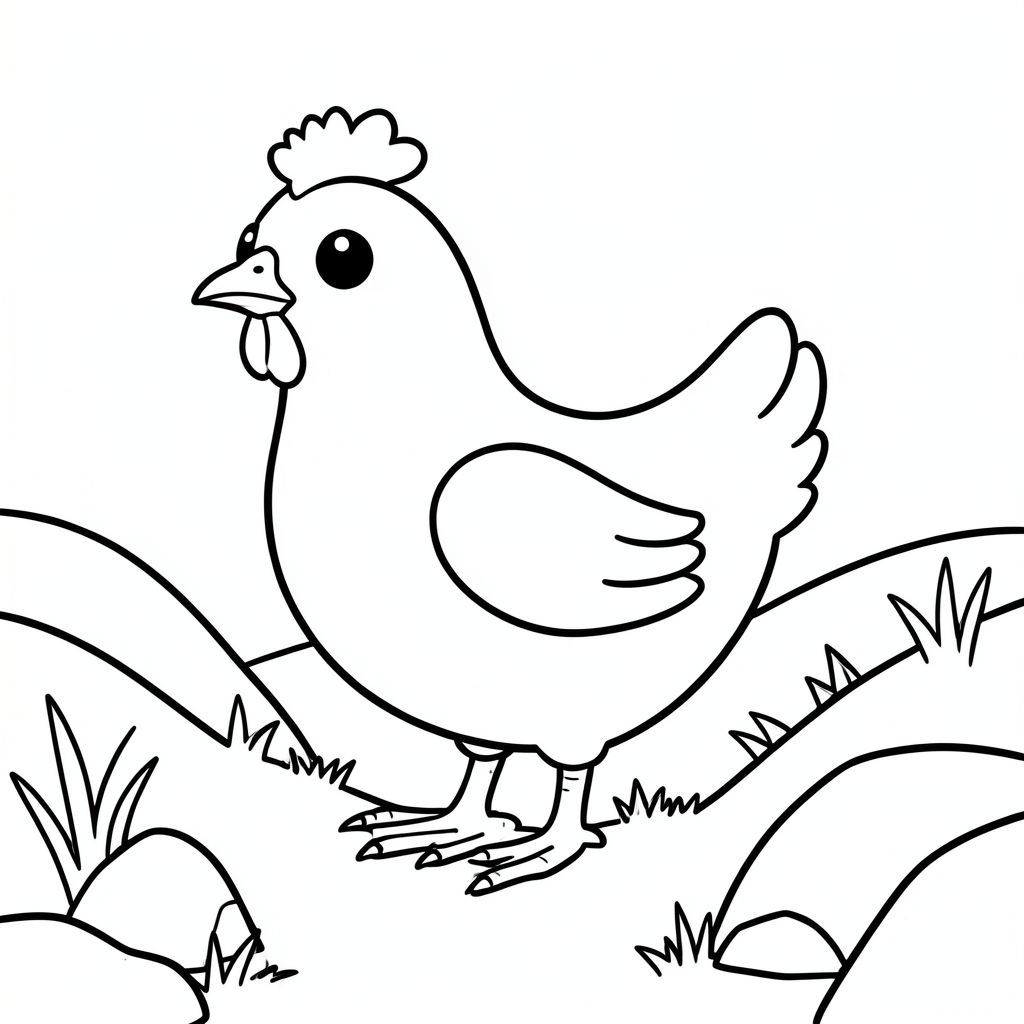 solo, một con chim, một đầu, hai mắt, một mỏ, hai cánh, hai chân, một đuôi, tỷ lệ tự nhiên, quy mô thích hợp trong môi trường, đúng giải phẫu, gà, cỏ, sườn đồi lăn, đá, nền đơn giản, dọn dẹp, tinh khiết, sách truyện, đơn giản, dễ thương, chibi, trang màu, nghệ thuật đường, nền trắng, solo, chủ đề đơn, đúng giải phẫu, giải phẫu hoàn hảo