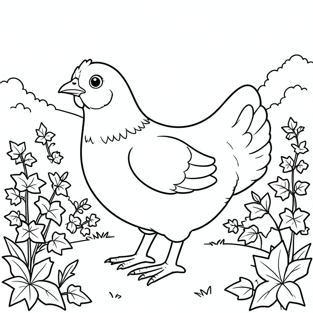 solo, một con chim, một đầu, hai mắt, một mỏ, hai cánh, hai chân, một đuôi, tỷ lệ tự nhiên, quy mô thích hợp trong môi trường, đúng giải phẫu, gà, Đá giếng, vườn, cây thường xuân, Quốc gia, nhỏ, đơn giản, dọn dẹp, lý lịch, phong cảnh, Tán lá, trang tô màu, nghệ thuật đường, nền trắng, Solo, chủ đề đơn, chính xác về mặt giải phẫu, giải phẫu hoàn hảo