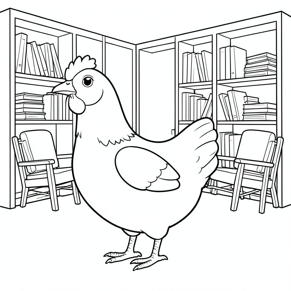 solo, một con chim, một đầu, hai mắt, một mỏ, hai cánh, hai chân, một đuôi, tỷ lệ tự nhiên, quy mô thích hợp trong môi trường, đúng giải phẫu, gà, giá sách, kệ, ngăn xếp, trà, ghế đọc, gỗ, nền đơn giản, dọn dẹp, nội địa, yên tĩnh, trang màu, nghệ thuật đường, nền trắng, solo, chủ đề đơn, đúng giải phẫu, giải phẫu hoàn hảo