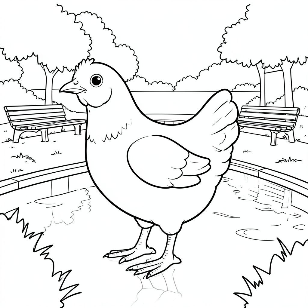 solo, một con chim, một đầu, hai mắt, một mỏ, hai cánh, hai chân, một đuôi, tỷ lệ tự nhiên, quy mô thích hợp trong môi trường, đúng giải phẫu, gà, hồ bơi, công viên tưởng niệm, băng ghế, yên tĩnh, phản chiếu, đơn giản, dọn dẹp, lý lịch, phong cảnh, cây xanh, trang màu, nghệ thuật đường, nền trắng, solo, chủ đề đơn, chính xác về mặt giải phẫu, giải phẫu hoàn hảo