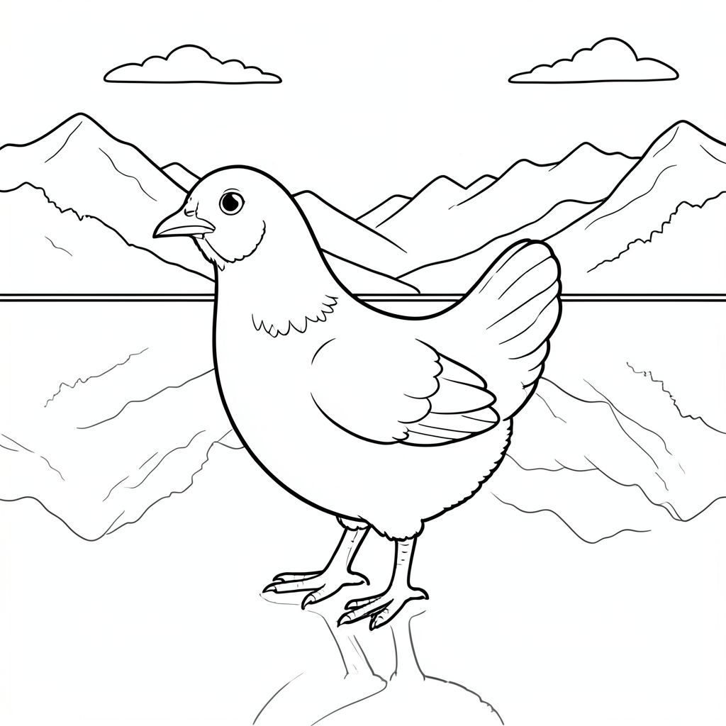 solo, một con chim, một đầu, hai mắt, một mỏ, hai cánh, hai chân, một đuôi, tỷ lệ tự nhiên, quy mô thích hợp trong môi trường, đúng giải phẫu, gà, hồ núi cao, nước tĩnh, núi, sự phản chiếu, rõ ràng, đơn giản, sạch sẽ, lý lịch, đường chân trời, bầu trời, trang màu, nghệ thuật đường, nền trắng, solo, chủ đề đơn, đúng về mặt giải phẫu, giải phẫu hoàn hảo