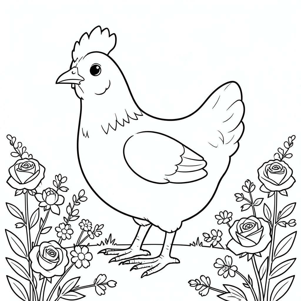 solo, một con chim, một đầu, hai mắt, một mỏ, hai cánh, hai chân, một đuôi, tỷ lệ tự nhiên, quy mô thích hợp trong môi trường, đúng giải phẫu, gà, Làn đường, hàng rào, hoa hồng, hoa dại, yên tĩnh, đơn giản, sạch sẽ, lý lịch, độc thân, nhỏ, trang tô màu, nghệ thuật đường, nền trắng, solo, chủ đề đơn, chính xác về mặt giải phẫu, giải phẫu hoàn hảo