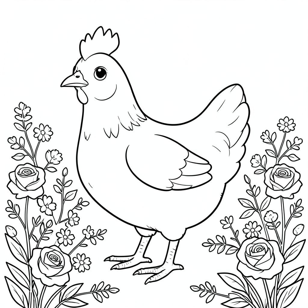 solo, một con chim, một đầu, hai mắt, một mỏ, hai cánh, hai chân, một đuôi, tỷ lệ tự nhiên, quy mô thích hợp trong môi trường, đúng giải phẫu, gà, Làn đường, hàng rào, hoa hồng, hoa dại, yên tĩnh, đơn giản, sạch sẽ, lý lịch, sách truyện, tinh khiết, trang tô màu, nghệ thuật đường, nền trắng, solo, chủ đề đơn, đúng giải phẫu, giải phẫu hoàn hảo