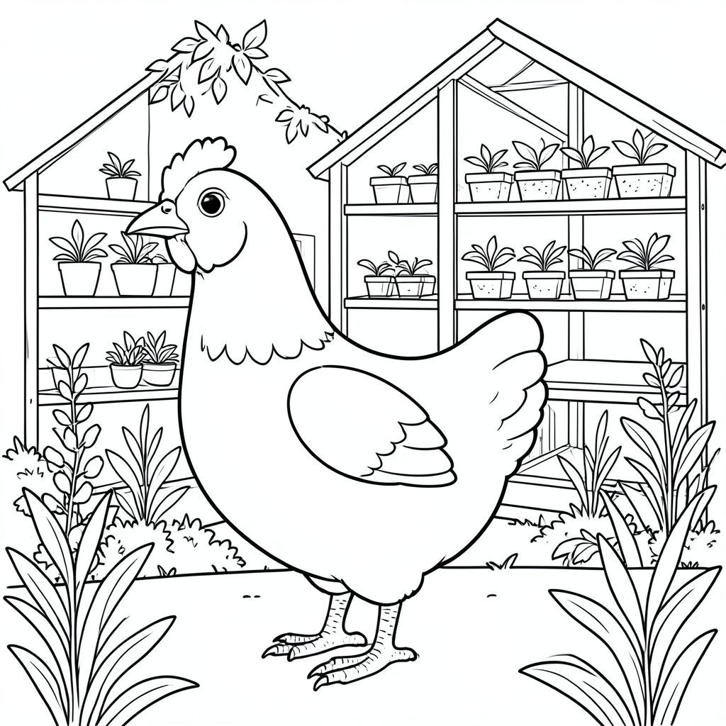 solo, một con chim, một đầu, hai mắt, một mỏ, hai cánh, hai chân, một đuôi, tỷ lệ tự nhiên, quy mô thích hợp trong môi trường, đúng giải phẫu, gà, Nhà kính, kệ, cây con, Bằng gỗ, đơn giản, sạch sẽ, tự nhiên, lý lịch, Tán lá, thực vật, trang tô màu, nghệ thuật đường, nền trắng, solo, chủ đề đơn, đúng giải phẫu, giải phẫu hoàn hảo