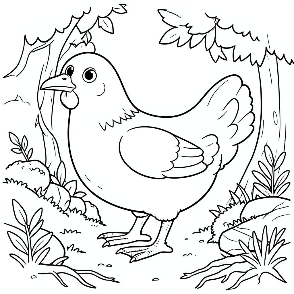 solo, một con chim, một đầu, hai mắt, một mỏ, hai cánh, hai chân, một đuôi, tỷ lệ tự nhiên, quy mô thích hợp trong môi trường, đúng giải phẫu, gà, rêu, bức tường đá, rừng thung lũng, yên tĩnh, đơn giản, sạch sẽ, đất, rễ, tán lá, nhỏ, trang tô màu, nghệ thuật đường, nền trắng, solo, chủ đề đơn, chính xác về mặt giải phẫu, giải phẫu hoàn hảo