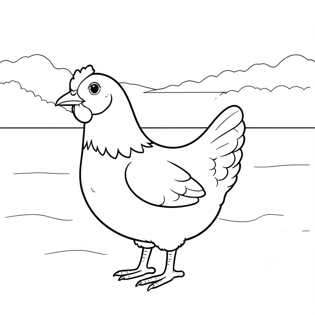 solo, một con chim, một đầu, hai mắt, một mỏ, hai cánh, hai chân, một đuôi, tỷ lệ tự nhiên, quy mô thích hợp trong môi trường, đúng về mặt giải phẫu, gà, hồ, bình tĩnh, bình minh, sương mù, tăng, rõ ràng, đường chân trời, nước, mịn, đơn giản, trang màu, nghệ thuật đường, nền trắng, solo, chủ đề đơn, chính xác về mặt giải phẫu, giải phẫu hoàn hảo
