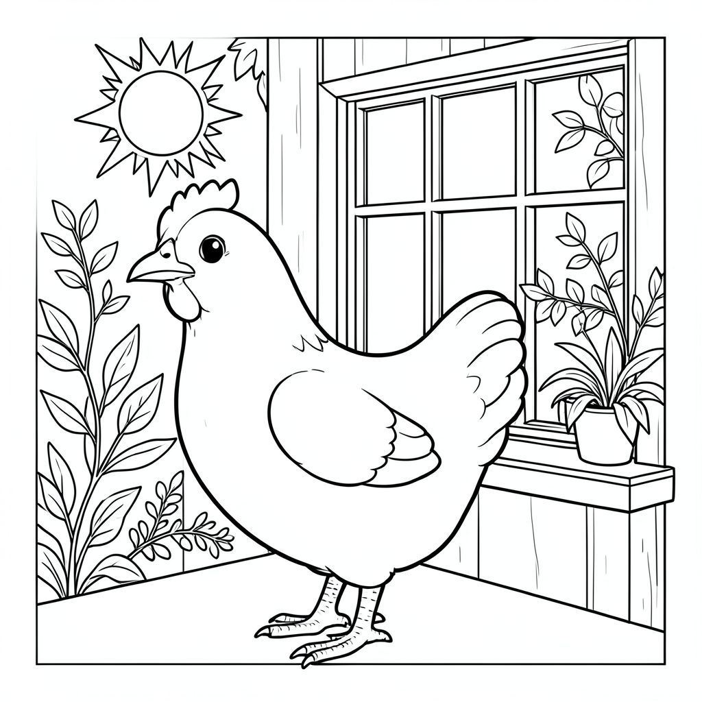 solo, một con chim, một đầu, hai mắt, một mỏ, hai cánh, hai chân, một đuôi, tỷ lệ tự nhiên, quy mô thích hợp trong môi trường, đúng về mặt giải phẫu, gà, mặt trời, góc ăn sáng, Cửa sổ vịnh, thực vật, ngưỡng cửa, đơn giản, sạch sẽ, lý lịch, Lá, bằng gỗ, Trang tô màu, nghệ thuật đường, nền trắng, Solo, chủ đề đơn, chính xác về mặt giải phẫu, giải phẫu hoàn hảo