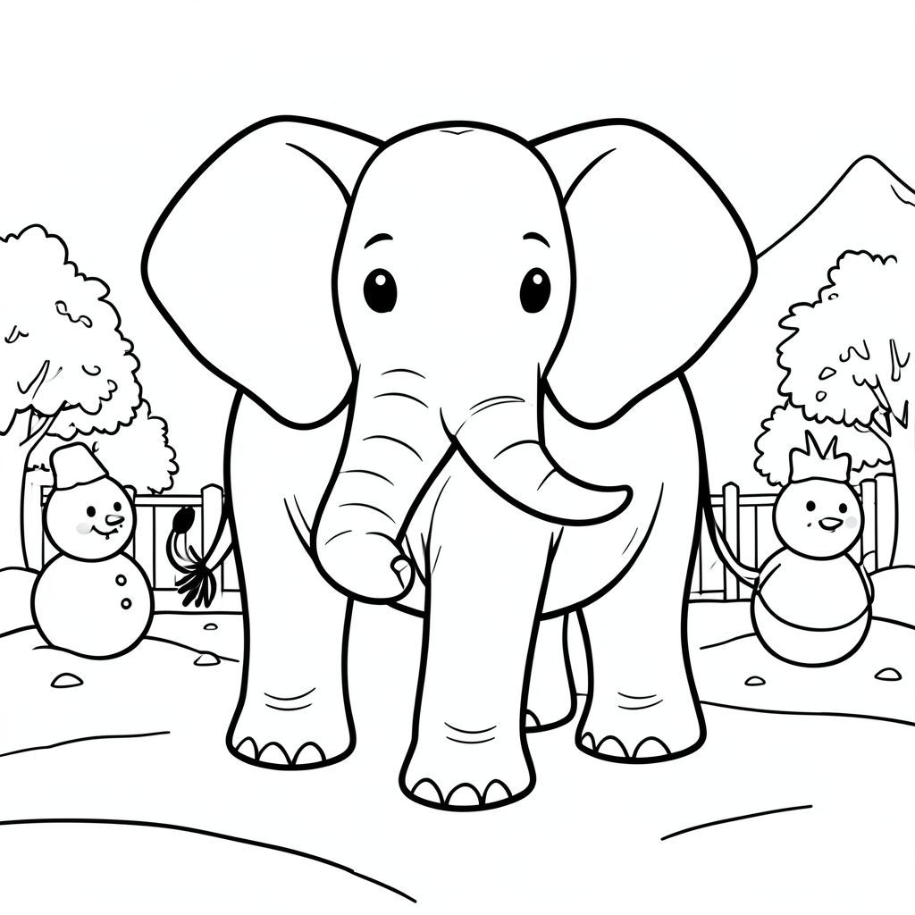 solo, một con voi, một đầu, hai mắt, hai tai lớn, một thân cây, bốn chân, một cái đuôi, bàn chân trên nền vững chắc, tỷ lệ tự nhiên, quy mô thích hợp trong môi trường, đúng về mặt giải phẫu, voi, tuyết, mùa đông, sân trước, người tuyết, tuyết, tuyết tươi, nền đơn giản, dọn dẹp, phong cách truyện tranh, nghệ thuật đại chúng, trang màu, nghệ thuật đường, nền trắng, solo, chủ đề đơn, đúng giải phẫu, giải phẫu hoàn hảo