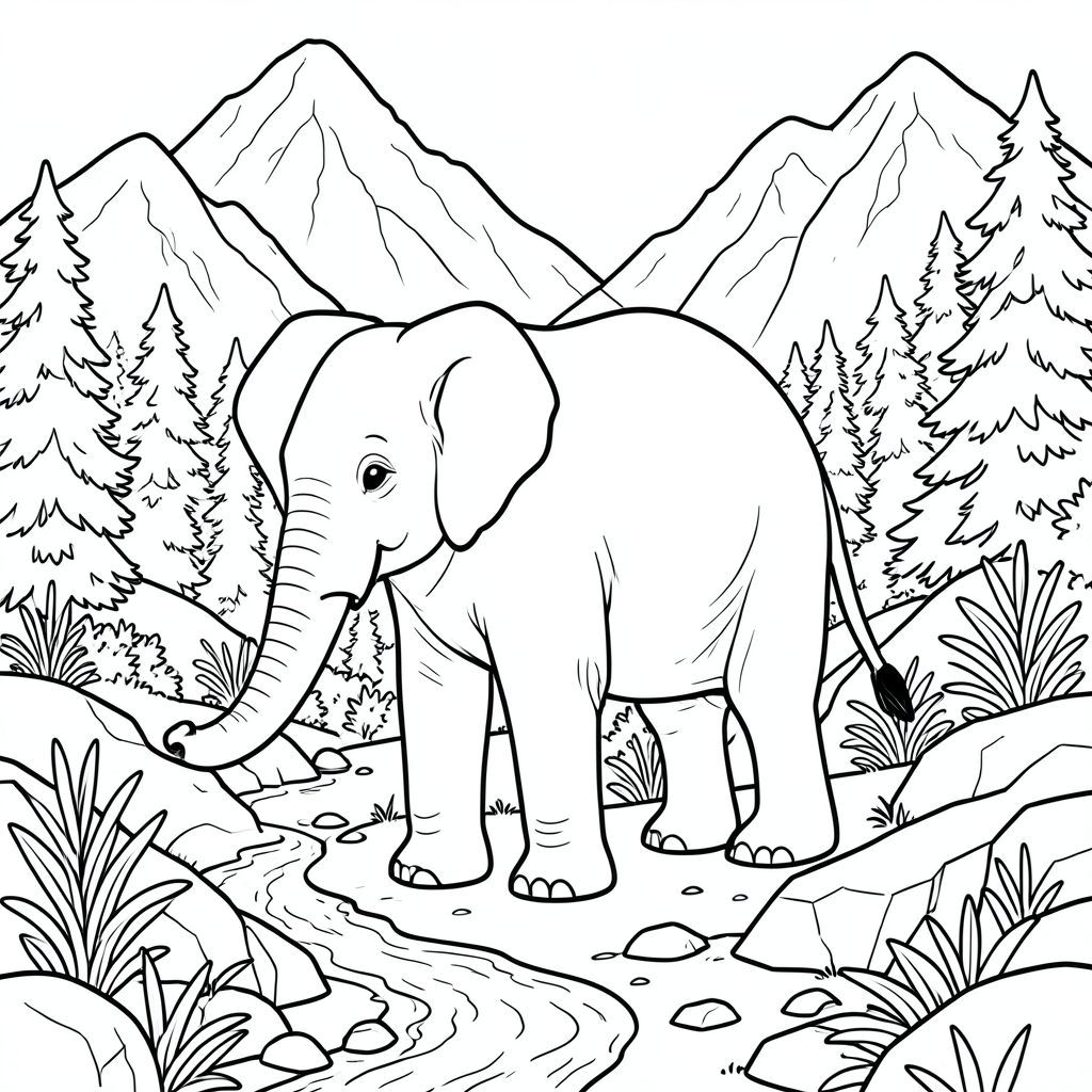 solo, một con voi, một đầu, hai mắt, hai tai lớn, một thân cây, bốn chân, một đuôi, bàn chân trên mặt đất vững chắc, tỷ lệ tự nhiên, quy mô thích hợp trong môi trường, đúng về mặt giải phẫu, voi, Sườn núi, tuyết, tan chảy, dòng chảy, đá, thảm thực vật, dày đặc, cao, đá, trang màu, nghệ thuật đường, nền trắng, solo, chủ đề đơn, đúng giải phẫu, giải phẫu hoàn hảo