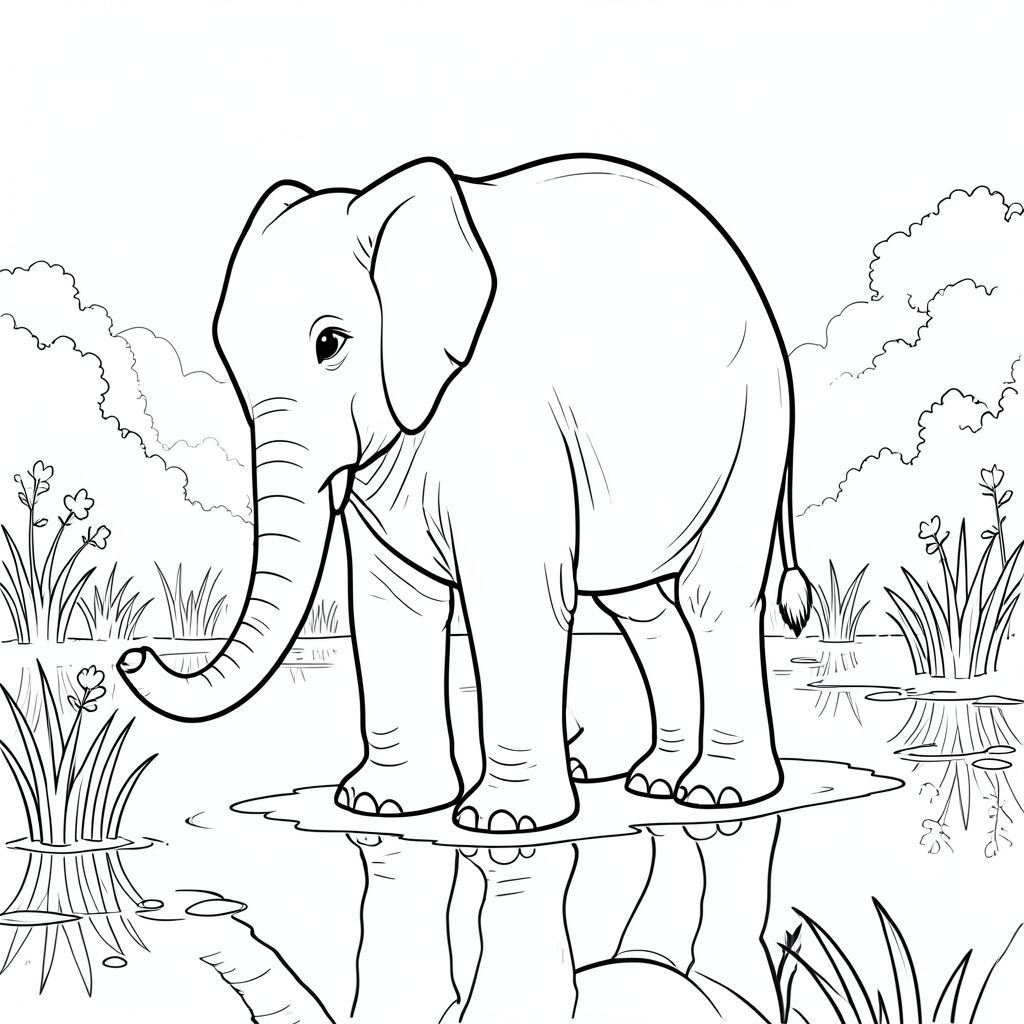 solo, một con voi, một đầu, hai mắt, hai tai lớn, một thân cây, bốn chân, một đuôi, bàn chân trên mặt đất vững chắc, tỷ lệ tự nhiên, quy mô thích hợp trong môi trường, đúng về mặt giải phẫu, voi, sương mù, đất ngập nước, bình minh, sương mù, mọc lên, ly, vẫn còn, nước, phản chiếu, mềm, trang tô màu, nghệ thuật đường, nền trắng, solo, chủ đề đơn, chính xác về mặt giải phẫu, giải phẫu hoàn hảo