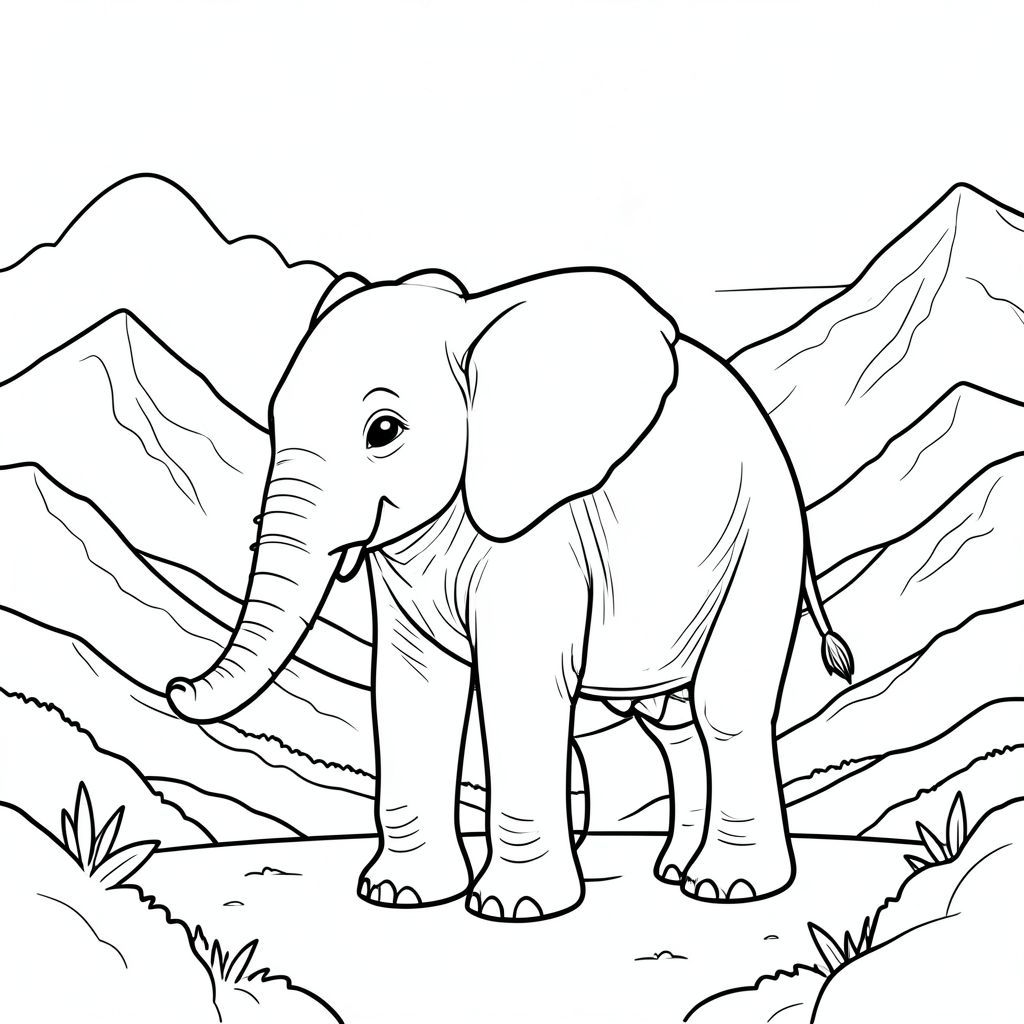 solo, một con voi, một đầu, hai mắt, hai tai lớn, một thân cây, bốn chân, một đuôi, bàn chân trên mặt đất vững chắc, tỷ lệ tự nhiên, quy mô thích hợp trong môi trường, đúng về mặt giải phẫu, voi, Sương mù, núi, mặt trời mọc, rặng núi, Xếp lớp, Chi tiết, thực tế, Môi trường, Toàn cảnh, tiền cảnh, trang tô màu, nghệ thuật đường nét, nền trắng, solo, chủ đề đơn, đúng về mặt giải phẫu, giải phẫu hoàn hảo