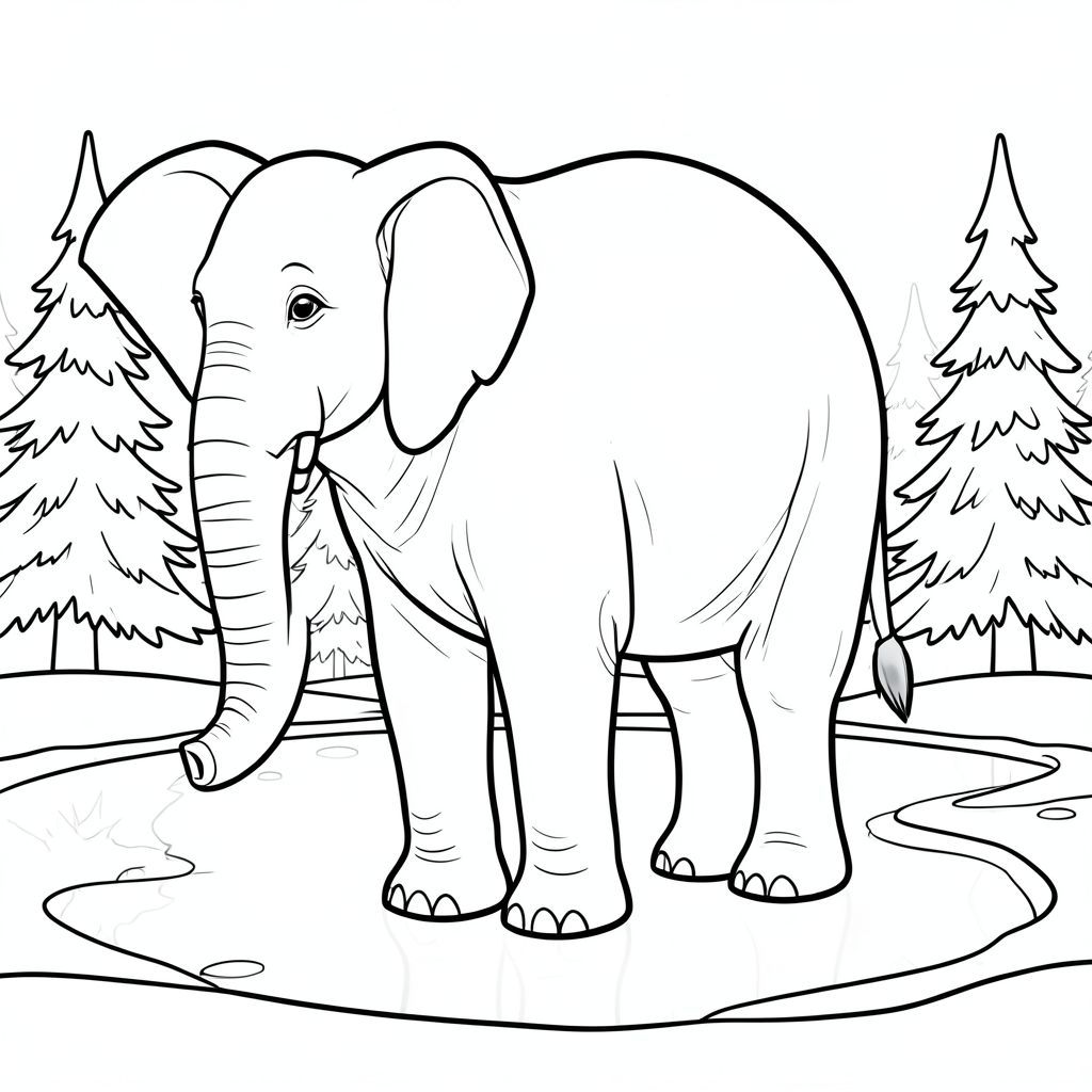 solo, một con voi, một đầu, hai mắt, hai tai lớn, một thân cây, bốn chân, một đuôi, bàn chân trên nền vững chắc, tỷ lệ tự nhiên, quy mô thích hợp trong môi trường, đúng về mặt giải phẫu, voi, Băng, ao, tuyết, thường xanh, mùa đông, rõ ràng, phản chiếu, mịn, đóng băng, lạnh, trang màu, nghệ thuật đường nét, nền trắng, solo, chủ đề đơn, đúng về mặt giải phẫu, giải phẫu hoàn hảo
