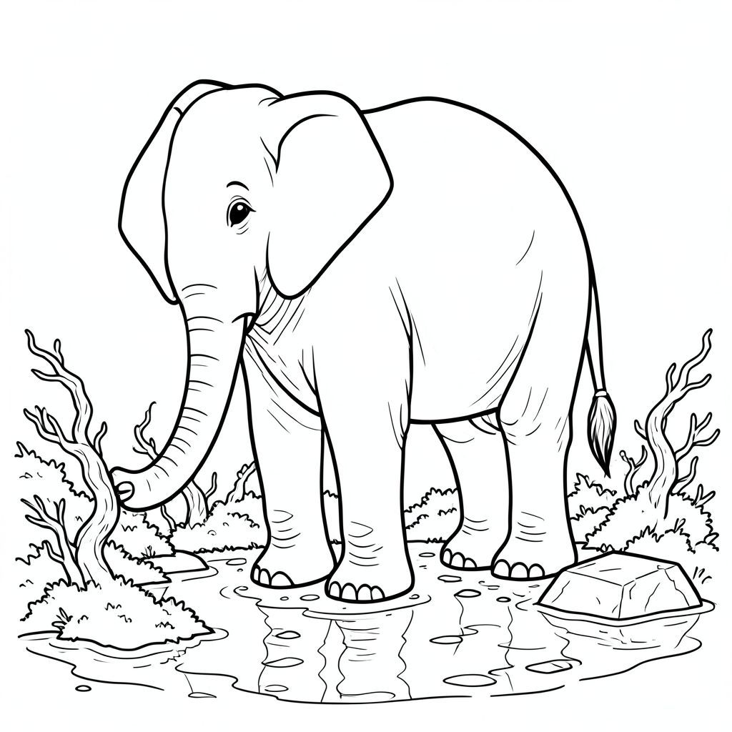 solo, một con voi, một đầu, hai mắt, hai tai lớn, một thân cây, bốn chân, một đuôi, chân trên nền vững chắc, tỷ lệ tự nhiên, quy mô thích hợp trong môi trường, đúng về mặt giải phẫu, voi, nước, than bùn, bụi cây xoắn, rêu, phản chiếu, đá, phong hóa, mặt đất ẩm ướt, nhỏ, bị cô lập, trang màu, nghệ thuật đường, nền trắng, solo, chủ đề đơn, đúng giải phẫu, giải phẫu hoàn hảo