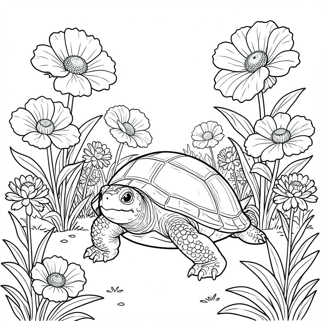 solo, rùa đơn, một đầu, hai mắt, bốn chân, một vỏ, một đuôi, bàn chân trên mặt đất vững chắc, tỷ lệ tự nhiên, quy mô thích hợp trong môi trường, đúng giải phẫu, rùa, Hoa khổng lồ, quá khổ, cao, tươi tốt, phức tạp, chi tiết, thực tế, vườn, phong cảnh, ánh sáng mặt trời, trang màu, nghệ thuật đường, nền trắng, solo, chủ đề đơn, đúng giải phẫu, giải phẫu hoàn hảo